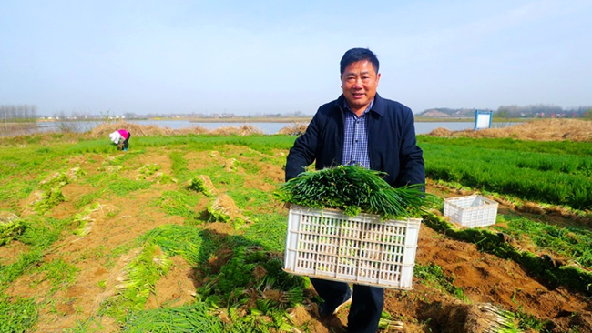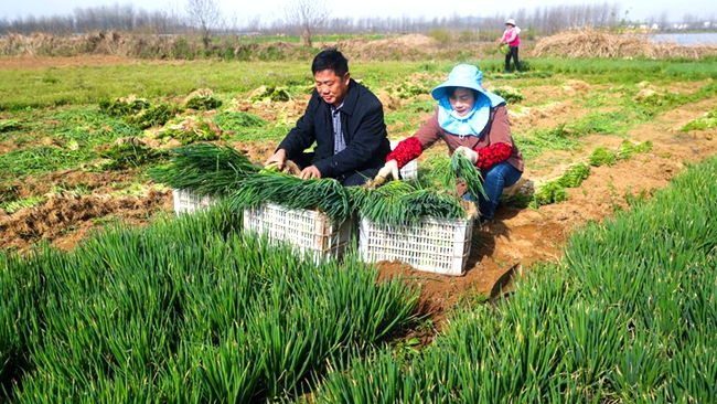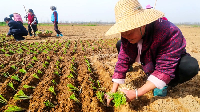 河南省信阳市光山县江威合作社社员正在收获、移栽小香葱。2020年10月,该合作社从云南玉溪引进优良品种小香葱,采取“合作社+基地+农户”的经营模式,小香葱两个月收获一次,预计亩均年收入达30000多元。小小的小香葱,为村民带来致富大产业。(辛静 谢万柏 摄 )
