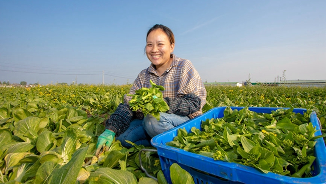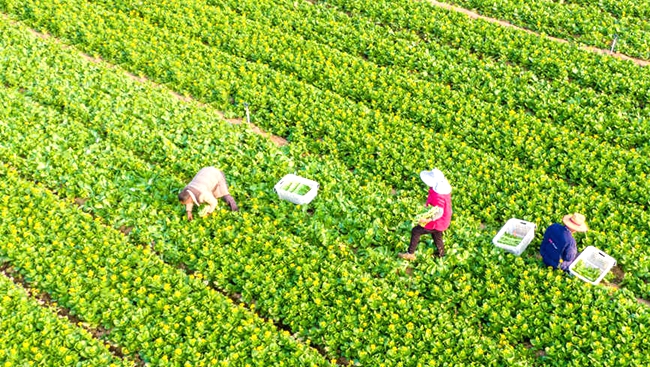 工人忙着采摘新鲜的蔬菜 (何志远 摄)