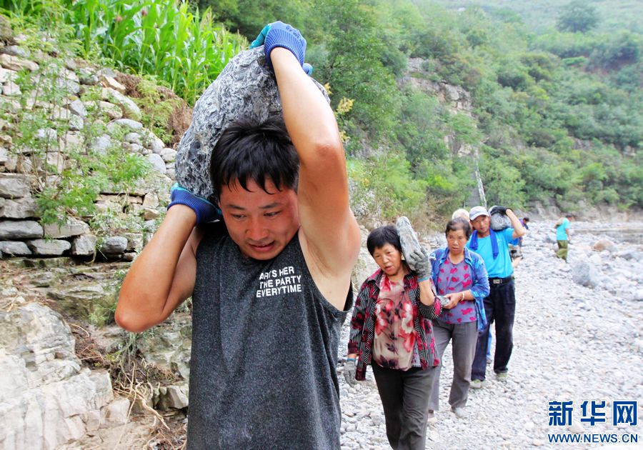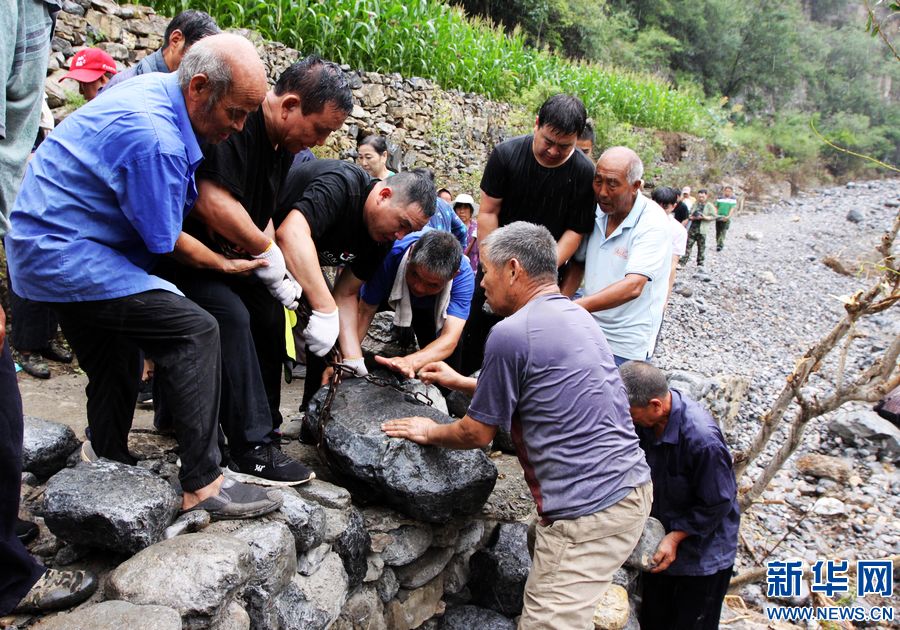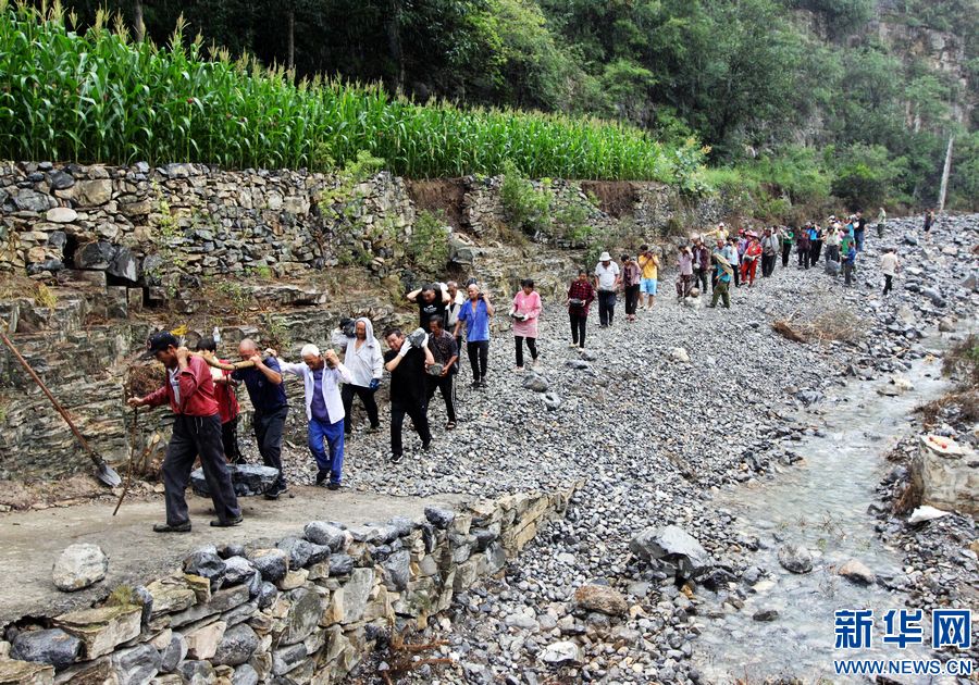 7月22日,受暴雨影响,青天河村的水、电、路全部中断。村两委干部组织全村175名村民连夜转移到安全地带,并带领大家立即展开自救。目前,宽1.5米、长4公里的出村道路即将修通。新华网发 (程全 乔夏萍 摄)