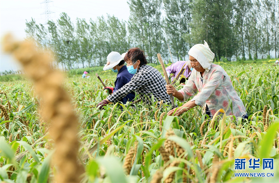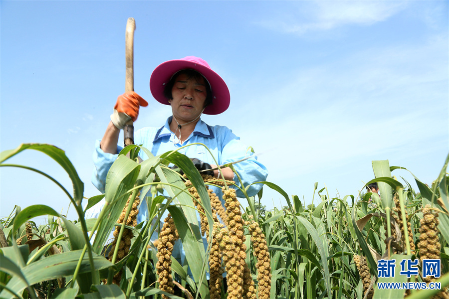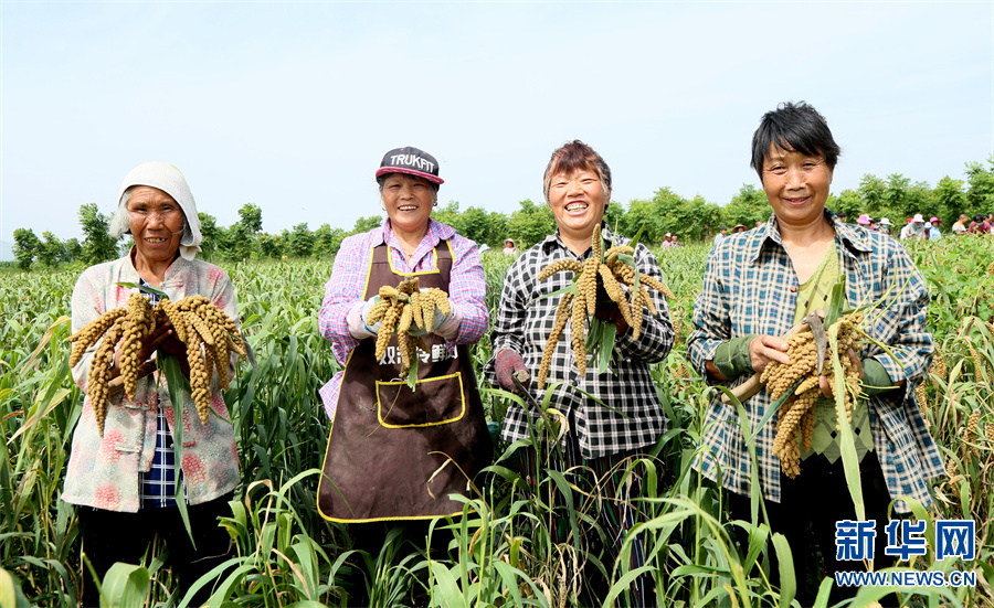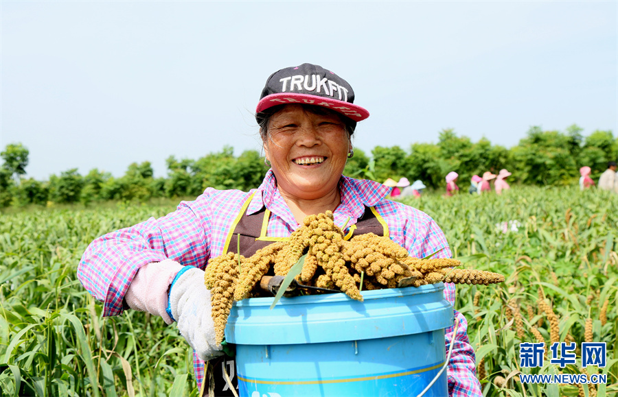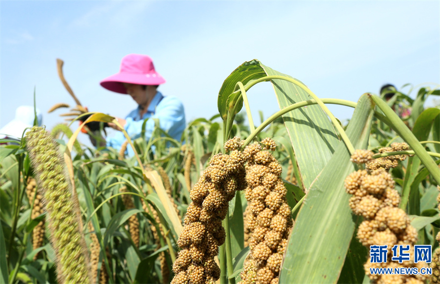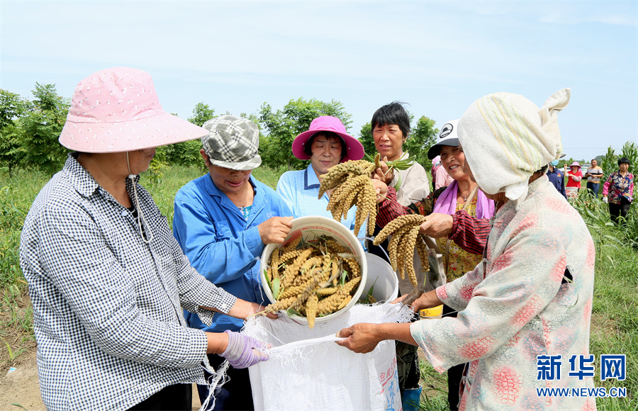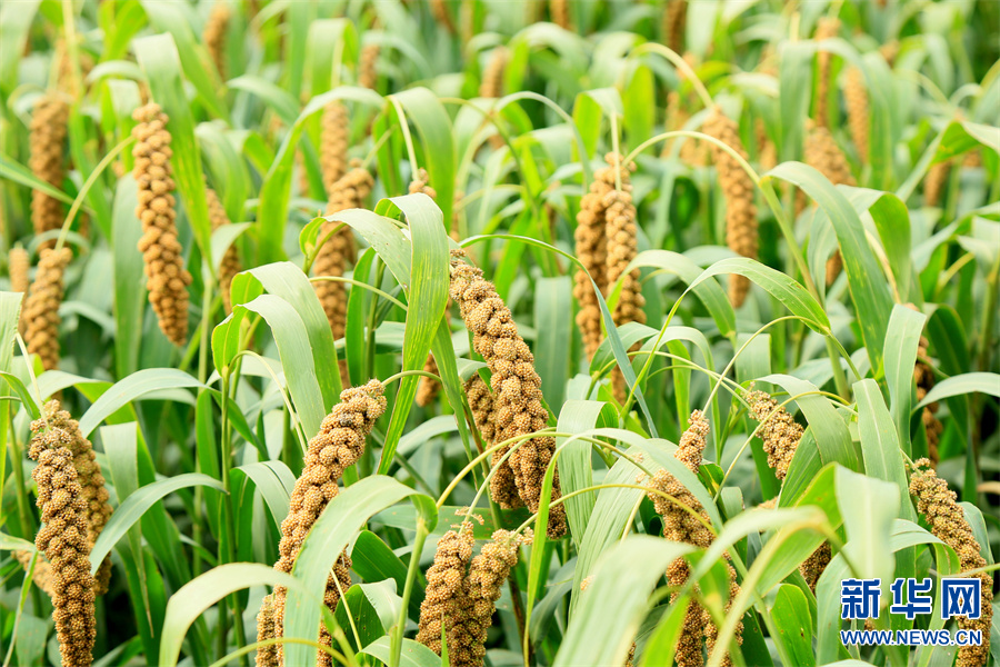 河南省洛阳市汝阳县地处豫西伏牛山区,该县内埠镇积极调整农业种植结构,围绕市场需求,引导、扶持当地群众发展特色农业,推广谷子种植,开展规模化经营,实施“党支部+合作社+农户”模式种植优质谷子1.2万亩,助力农民增收。(康红军 摄)