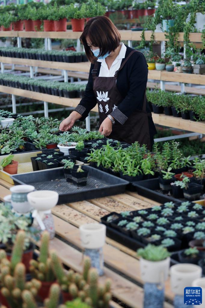 近年来,河南省宝丰县通过“公司+农户”的形式,引导农民发展多肉植物特色种植,打造乡村农旅融合新业态。同时,结合市场需求采取“线上、线下”的销售模式,把多肉植物销售到省内外,促进农业增效和农民增收,助力乡村振兴。(何五昌 摄)
