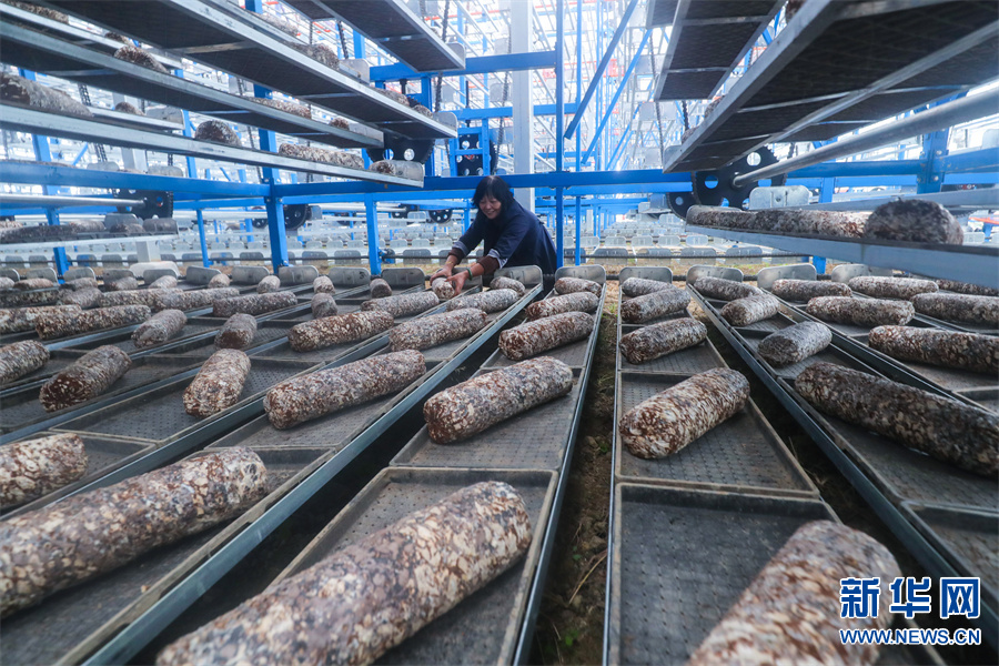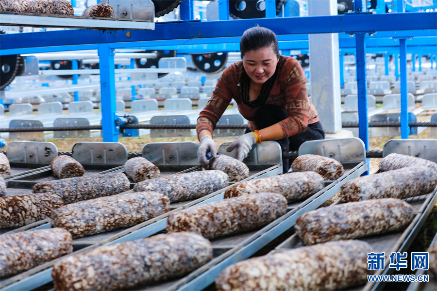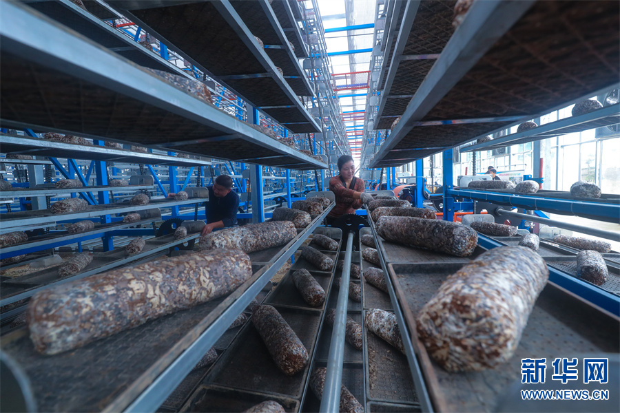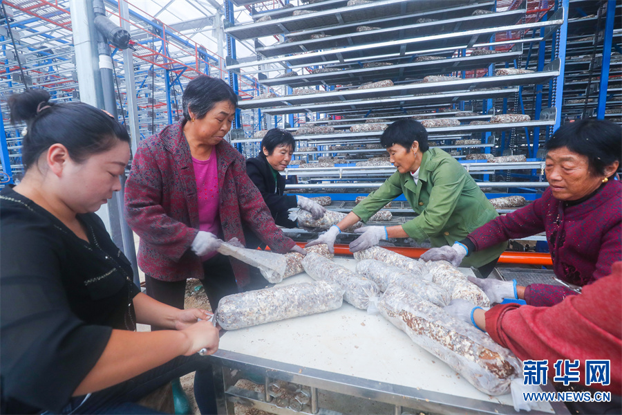近来,河南省信阳市光山县罗陈乡张楼村引进种植大棚香菇,采取“合作社+基地+农户”的种植经营方式,让村民增收致富。(谢万柏 摄)