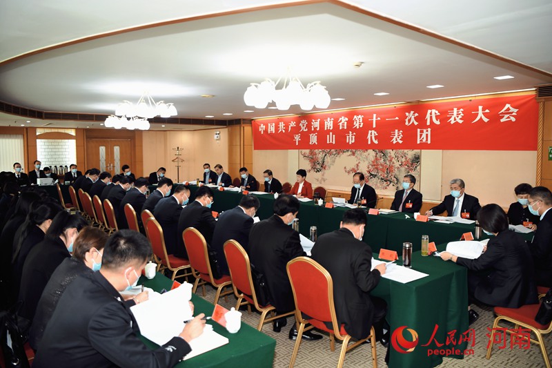 平顶山市代表团围绕党代会报告展开认真讨论和审议。人民网 尚明桢摄