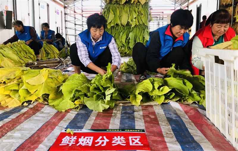 汝阳县三屯镇下河村集中烘烤点内,泽农烟叶种植专业合作社长曹玉宾,他一会儿查看电烤房温度情况,一会儿指导工人进行烟叶分级,正认真细致地照看着入社烟农张卫星的烟叶。