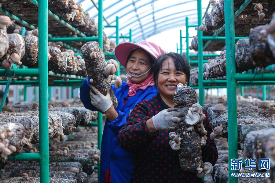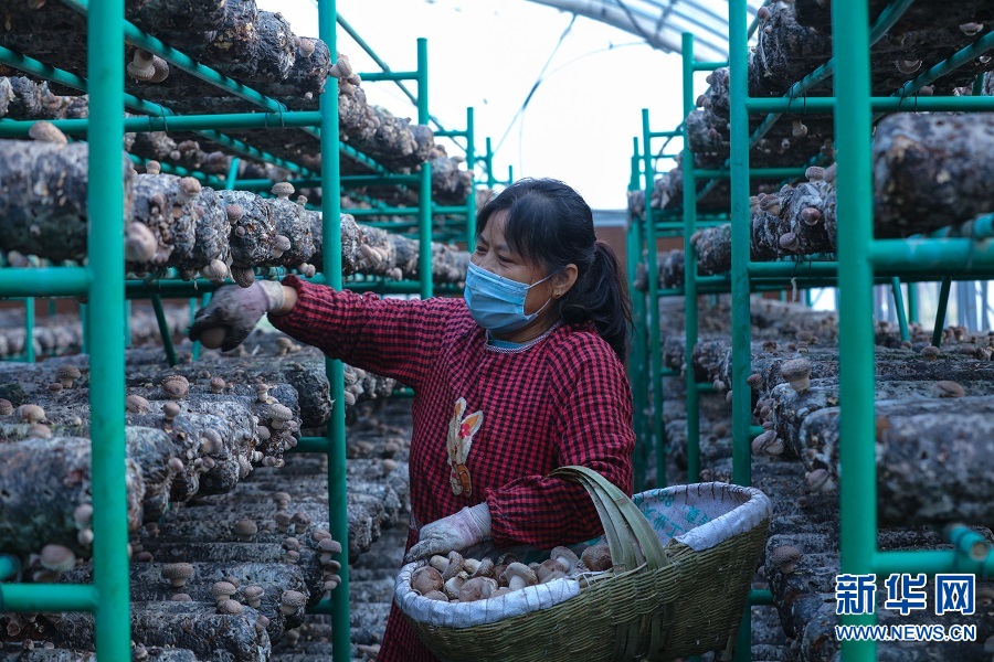 据了解,该基地今年引进花菇大棚种植技术,采取“合作社+基地+农户”的经营方式,吸纳了当地200多名村民在家门口就业。同时,还把种植花菇技术传授给当地村民,让更多村民通过种植花菇走上致富路。新华网发(谢万柏 摄)